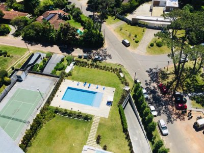 Pileta exterior e interior, barbacoa, cancha de tenis, sauna, gimnasio, etc.