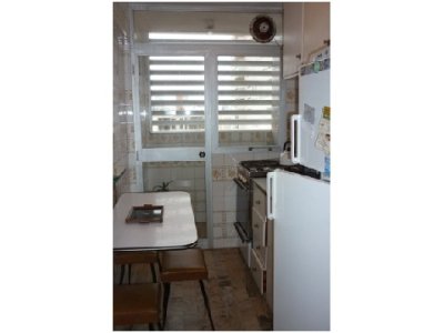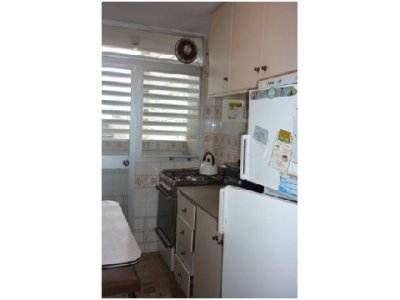 Cocina equipada con electrodomésticos, lavarropas y lavavajillas.