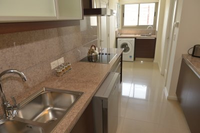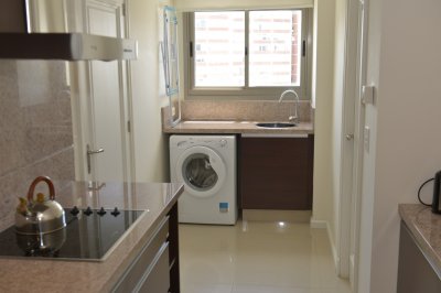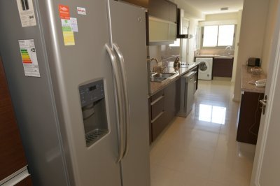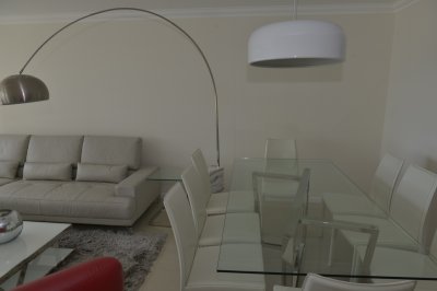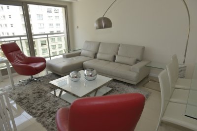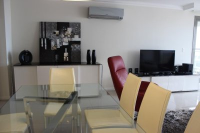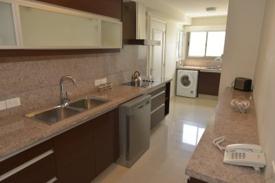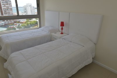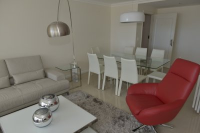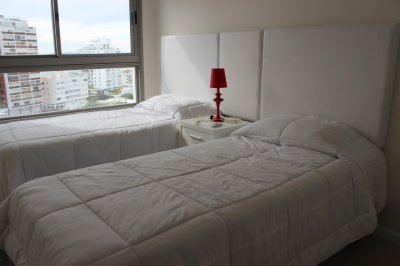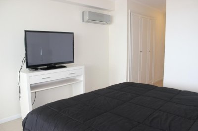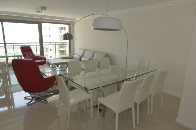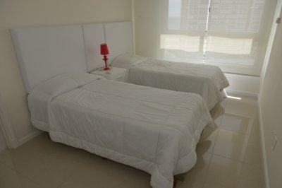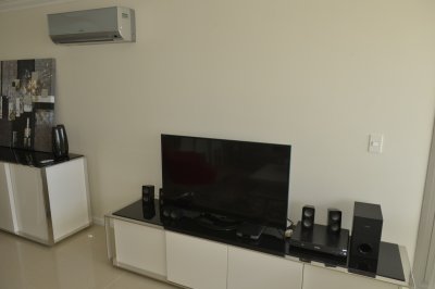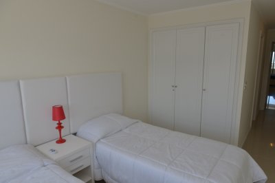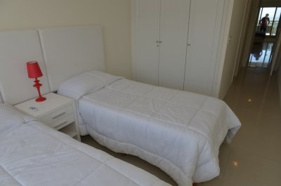 Amplio living comedor, terraza al frente con vista a Playa Brava, cuenta con tres dormitorios en suite (ppal al frente con acceso a la terraza) los 2 restantes con terraza propia y sol de la tarde. Aire acondicionado en todos los ambientes, acceso a Internet inalámbrico (WI-FI), telefonía y televisión por cable. Es uno de los pocos apartamentos del Edificio que cuenta con dos garajes y terrazas