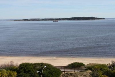 Frente al mar . Clasico edificio con excelentes servicios, 3 dormitorios y habitacion de servicio, esquina con toda la vista a playa mansa,
