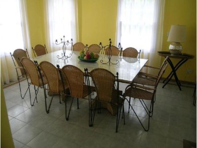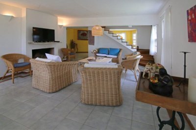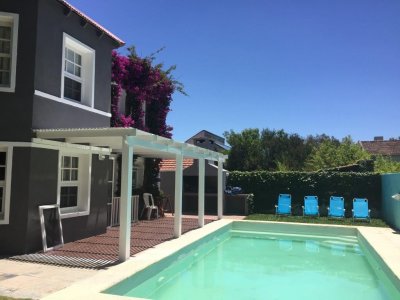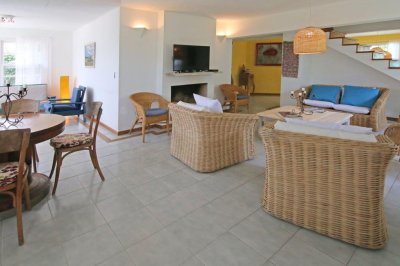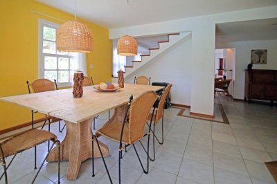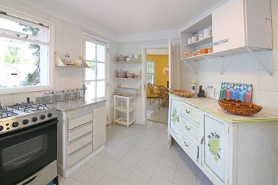 En el CORAZON DE LA BARRA, a pocos metros del mar y totalmente equipada para 12 personas, 4 dormitorios más dependencia de servicio con baño completo. PLANTA BAJA Living con hogar a leña, estar, comedor y Toilette. Alarma, teléfono inalámbrico, Wi Fi- TV con cable, Equipo de música, Licuadora, plancha, microondas, amplia heladera con feezer, Lavarropas-Cafetera eléctrica-Tostadora eléctrica-utensilios de cocina, vajilla para 12 personas, frazadas, cubrecamas y almohadas. Cochera Lavadero Dependencia de servicio con cama matrimonial y baño completo individual- Piscina de 8,00 x 4,00 – Filtro Vulcano VC50 con programación de filtrado automática-Reposeras para playa- Reposeras/Cama con ruedas en piscina para solárium Riego por aspersión-Parrillero-Leñera-Baulera. PLANTA ALTA 1er Dormitorio en suite con jacuzzi, amplio placard, Aire Acondicionado y cama matrimonial, 2do Dormitorio amplio placard, Ventilador direccional y dos cama, 3er dormitorio amplio placard, Ventilador direccional y cama matrimonial, 4to Dormitorio amplio placard, Ventilador direccional, 2 camas y Baño completo. TODA CERCADA Y CON PORTONES, PARA SEGURIDAD DE NIÑOS Y PERROS.