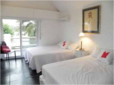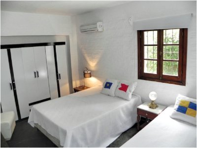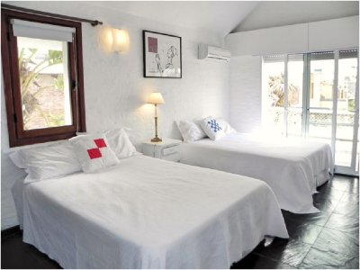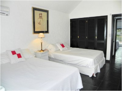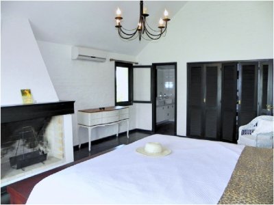 En la casa principal hay 4 dormitorios en el primer piso de la planta baja, 1 baño y el garaje que también puede ser utilizado como otro dormitorio compartir el baño principal de la planta baja. La casa de huéspedes extranjeros tiene una suite y una habitación pequeña. Suite de 1 o Master: un Rey 2.00 X 2.00 m. Baño completo: inodoro, bidet, bañera y calentador de toallas. Primer piso con vistas al mar – Suite 2: Dos gemelos 1.00 X 2.00 M. baño completo. Primera planta con vistas a la piscina – Suite 3 y Suite 4: dos camas matrimoniales 1,40 x 2,00 M en cada suite (4 camas en total) Baño completo. Primera planta con vistas a la parte delantera y la piscina. Suite 5: dos camas matrimoniales 1,40 X 2,00 M. En la planta. Los cuartos de baño son modernos y recientemente renovado, con sistema de calefacción de agua caliente de la caldera eléctrica.
