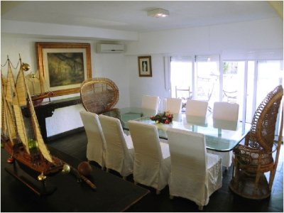 Completamente remodelado, tiene todos los detalles diseñados para la comodidad de sus huéspedes. 4 suites en el primer piso, una suite en la planta baja, garaje, sala de estar y un amplio comedor, con vistas al mar, terrazas y barbacoa, piscina con gran solarium, casa de huéspedes, los anfitriones de la casa con todas las comodidades 12 personas. Las habitaciones son amplias y el salón tiene una chimenea, televisión, escritorio y un amplio sofá. El comedor tiene una mesa de cristal y 8 sillas. Toilette para los huéspedes. Todas las habitaciones disponen de aire acondicionado frío y caliente. Terrazas con barbacoa fija y una hermosa terraza de la piscina alrededor para sus momentos de relax al aire libre. La cocina está totalmente equipada. La casa ofrece platos, vasos y cubiertos, así como vajilla para 14 personas y el ajuar completo. Cuenta con sillas de playa y sombrillas para uso de los huéspedes. La tensión es el hogar 220v. Cable, sonido, WiFi y USB con señal constante. Todos los operadores de telefonía móvil tienen buena señal. Todo eléctrico y de fontanería de la casa, así como sus pinturas se encuentran en perfecto estado. El hostal cuenta con lavadora y secadora. 1 plaza de garaje y semicoberto espacio para 2 coches más.