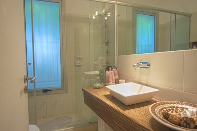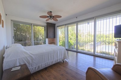 – planta baja; 3 suite todas con aire acondicionado y cortinas eléctricas, suite ppal con estufa a leña, hidromasaje y salida al jardin, todas las ventanas con rejas.
