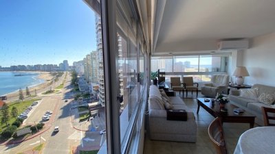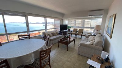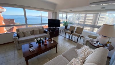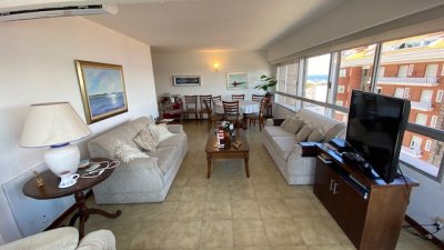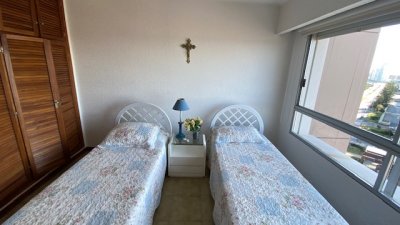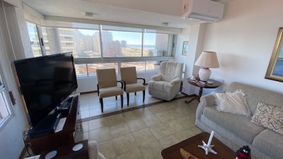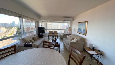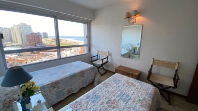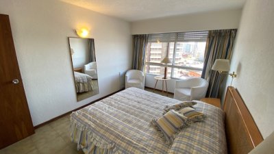 departamento en exccelente edificio ubicado a pasos de playa mansa y playa brava con servicio de mucamas y servicio de playa .
