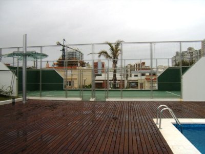 Parrillero propio, piscina climatizada, piscina abierta, play room, microcine, cancha de tennis, sauna.