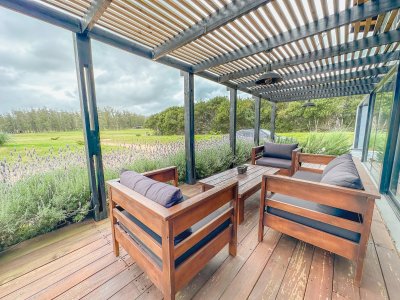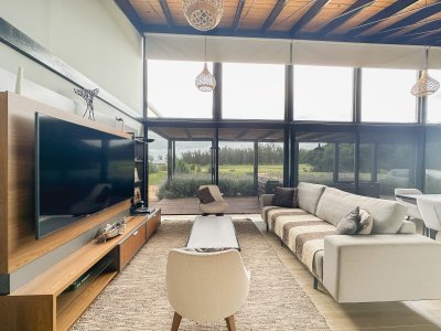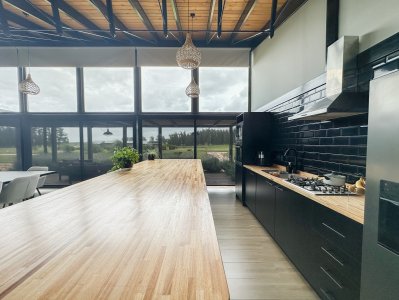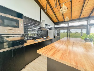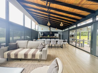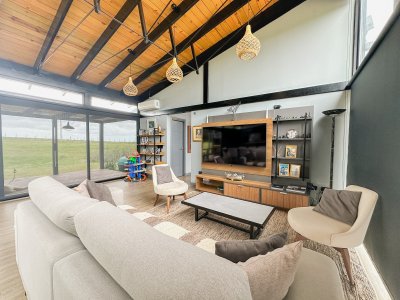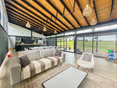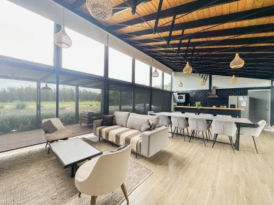 Hermosa propiedad a estrenar, barrio privado El Quijote. La construcción en hierro, hormigón y madera, logran calidez y modernidad al mismo tiempo, en un entorno natural rodeado de verde y agua. Se desarrolla sobre un lote de 5000 metros. Extenso living-comedor con aperturas sobre doble deck pergolado con parrillero. Desde un importante hall con portón en madera se accede a los 3 dormitorios (principal en suite con vestidor) y 2 baños completos. Despensa más toilette. Cochera, baulera y lavadero. Acceso a Club House con amenities de primera categoría para disfrutar todo el año.