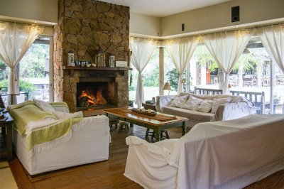 Living con hogar, comedor, cocina definida con comedor diario. Estar con hogar a leña. Galerias.