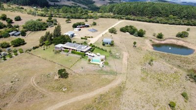 La propiedad también tiene una casa para el casero con una sala de estar/cocina, dos dormitorios y 2 baños. Tiene un gran galpon abastecido con todas las herramientas y equipos básicos necesarios para operar la propiedad, incluido un tractor John Deere. Integrado al galpón se encuentra un lavadero y una sala para el carneado de animales. Además, la propiedad tiene un área de almacenamiento de alimentos, así como un pequeño cuarto de servicio. También cuenta con una estructura de taller/artesanía actualmente en uso para ceramica.