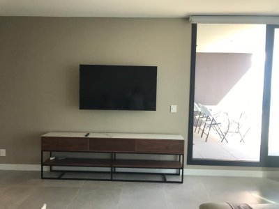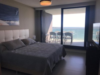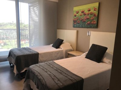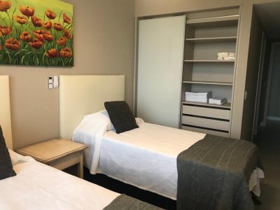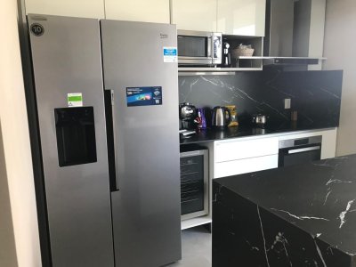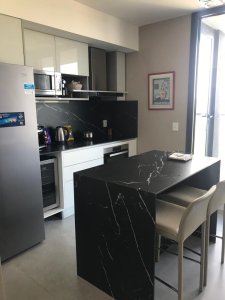 2 dormitorios en suit, living, comedor, cocina totalmente equipada.