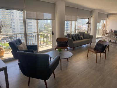 Disfruta de un living espacioso y cómodo, cocina con desayunador, 3 dormitorios, 2 baños y habitación de servicio. Además, cuenta con un lavadero independiente y balcones con vistas espectaculares. ¡No te pierdas la oportunidad de tener tu propio parrillero y disfrutar de las comodidades de un edificio con amenities y garage! Tu hogar ideal te espera.