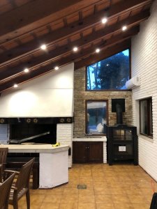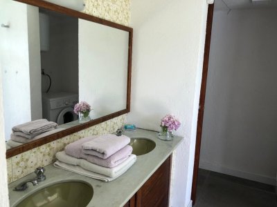 La casa cuenta con 5 dormitorios, 2 de ellos en suites, dependencia para servicio, 6 baños, cocina, living, comedor, barbacoa integrada, piscina grande con trampolín y un espectacular jardín. Además tiene casa de huéspedes con 2 dormitorios y 3 baños.