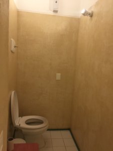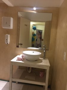 El local tiene 221 m2 de superficie, está sub dividido por medio de paredes de yeso en 3 áreas: recepción, salón principal y salón secundario; además cuenta con 2 baños completos.