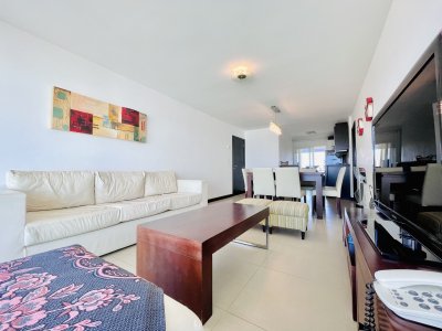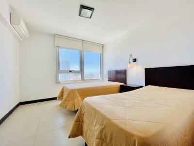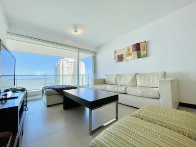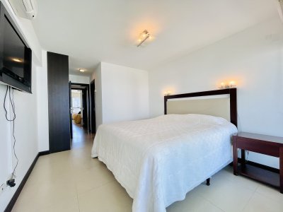 Venta y alquiler temporario de apartamento piso alto en torre con variedad de servicios en Playa Mansa, Punta del Este.