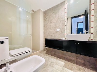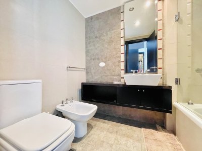 Moderna unidad dos cómodos dormitorios y dos baños completos, el principal se encuentra en suite y tiene salida hacia la terraza al frente.