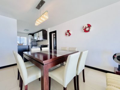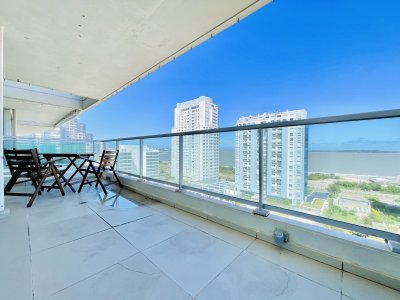 A pasos del Mar y de los centros comerciales, se encuentra esta torre moderna con muy buena vista. El edificio con servicio de recepción permanente, servicio de mucamas diario, servicio de playa en verano. Piscina abierta semi climatizada, gym, saunas, jacuzzi interior, sala de niños, sala de adultos, barbacoas cerradas, cancha multi deportes.