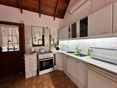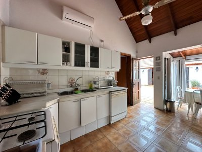 Cocina con desayunador que comunica a la dependencia de servicio con baño completo