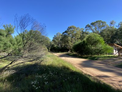Lote alto respecto a la calle. Bosque de pinos y entorno bastante construido.-