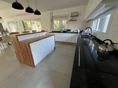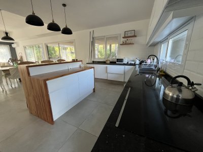 La casa se desarrolla sobre un terreno de 1010 m² y cuenta con 260 m² construidos. Dispone de 3 dormitorios y 3 baños, garantizando comodidad para toda la familia o invitados.