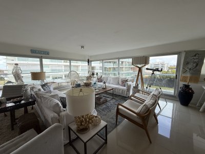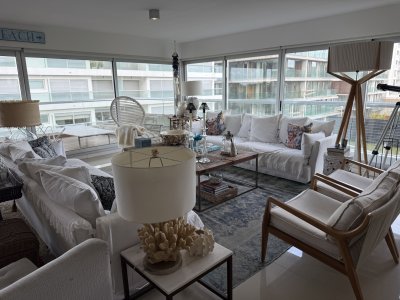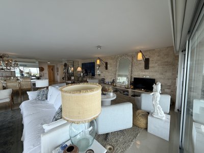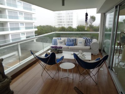 Espectacular apartamento de altísima gama. 3 dormitorios en suite, terraza, living comedor amplio, toilette, cocina, dependencia de servicio, lavadero. Garage para 2 autos. Complejo Silente, con todos los servicios, 5 estrellas.