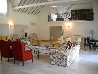 En la Planta Baja están el Living Principal de 100 mts con amplios ventanales y mobiliario de estilo francés. Contiguo esta el Comedor Principal para 10 personas . Además, en la Planta baja, hay 4 habitaciones en suite y la Sala de TV. Junto a esta última está el Comedor de Invierno (semicubierto) con una hermosa vista a los Tilos y los Rosales.