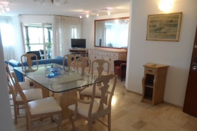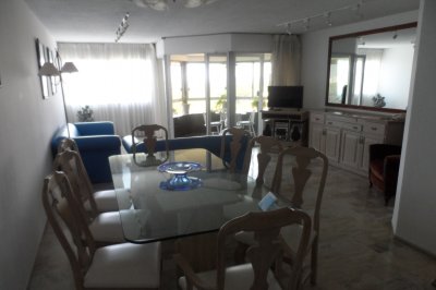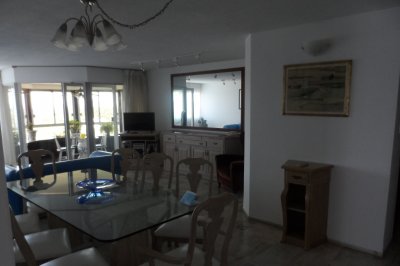 . Consta de 3 dorm 1 en suite, servicio completo living comedor amplio , octógono, cocina comedor completa,electrodomésticos y vajilla impecable para vivir todo el año o temporada. Garage y baulera cubierto , portería , seguridad 24 hs.servicio de mucama todo el año, pisos en mármol impecables.club house todo el año a extremar equipos de última generación .profesores de pileta y clases varias.internet en todo el apartamento incluido.