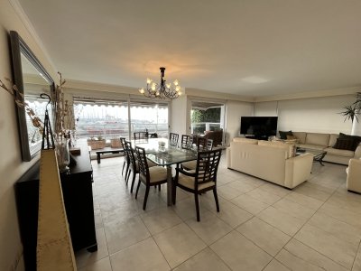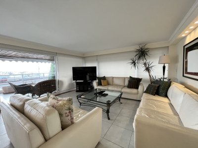 Edificio ubicado en el Puerto de Punta del Este, amplia planta con 3 dormitorios, 3 baños en suite, toilette, living comedor, cocina , lavadero, habitacion de servicio, o cuarto dormitorio con su baño , terraza al frente con vista al Puerto, garage y baulera.