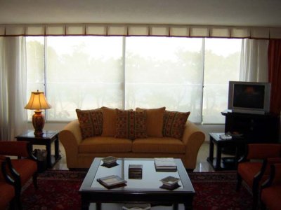Depto en Edificio Golden Gate – Playa Mansa, Amplia planta con 3 dormitorios, y habitacion de servicio, cocina con lavadero y disfrutable terraza con parrillero. Servicio de mucamas y Piscina