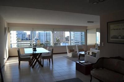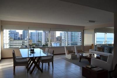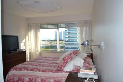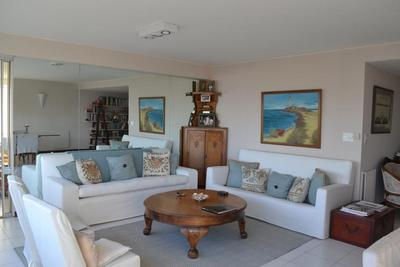 amplio living-comedor, con vista al mar, 3 dormitorios: dormitorio principal en suite, con vista al mar, 2 baños completos, estar independiente, cocina con office, dependencias de servicio y lavadero; acceso principal y de servicio. Muy luminoso, Aire Acondicionado en todos los ambientes.