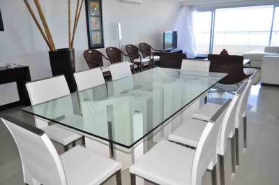 servicio de mucamas, piscina abierta, piscina cerrada climatizada, gimnasio, saunas, sala de juegos para niños y adolescentes, servicio de playa, sala de adultos, parrilleros, cancha de tenis, recepción y vigilancia las 24 hs.