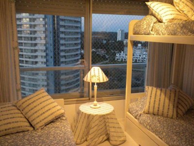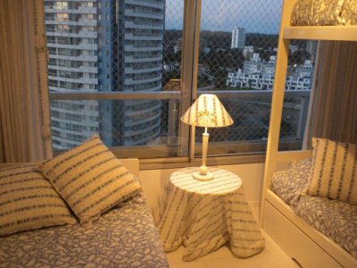Servicio del edificio : wifi en los aptos Piscina externa climatizada para adultos y niños , sauna, gimnasio, sala de diversion, sala de lectura,servicio de playa (incluye 4 reposeras por apto y 1 sombrilla)