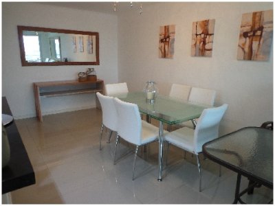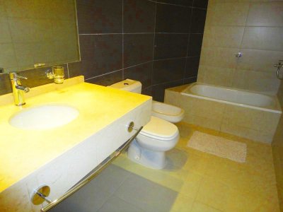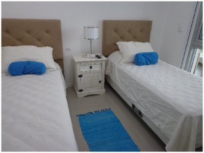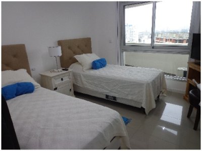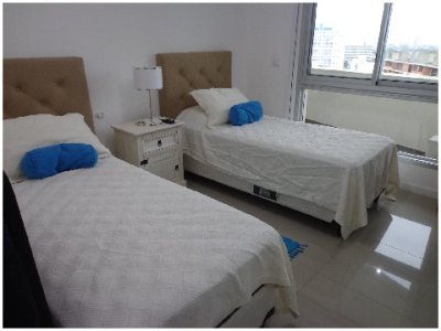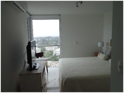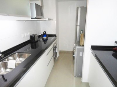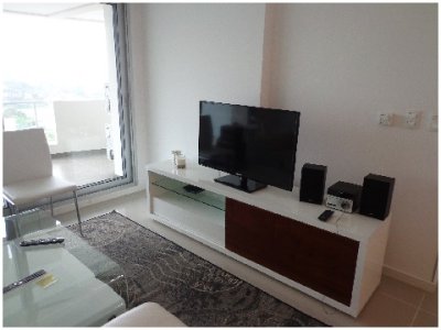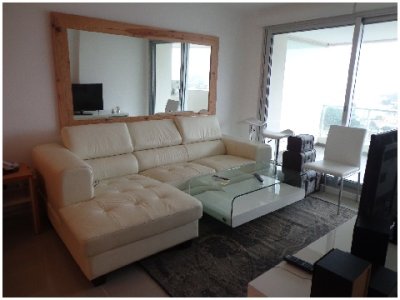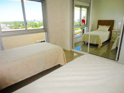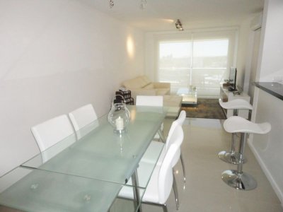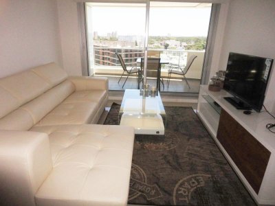 Tu departamento para disfrutar todo el año de Punta! Con una planta de unos 100 m2 de uso exclusivo, 2 dormitorios, 2 baños, amplio living comedor con vistas panorámicas, cómodo balcón. Excelente calidad de construcción. Losa radiante sectorizada, previsión de AA. La unidad se entrega con horno, anafe y campana, muebles sobre y bajo mesada, termotanques, placares espejados con sus interiores completos, 1 cochera en nivel subsuelo.