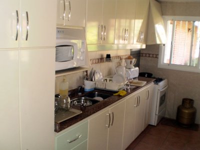La casa está muy bien equipada, además tiene en todos los ambientes aire acondicionado, total siete unidades de última generación, en los cuatros dormitorios,en el living y en el comedor, también en la edificación independiente de servicio o para niños, de dos ambientes con baño completo.