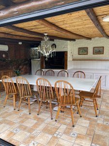 impécable chalet , ubicado en SAn RAfael a pocas cuadras del mar, Casa principal con 3 dormitorios , 3 baños ( 1 suite) living y comedor, cocina, lavadero, Casa al fondo con 2 dormitorios con 1 baño , Barbacoa cerrada y piscina climatizada cercada, Todos los ambientes con aire acondicionado.