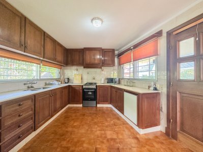 Los espacios comunes son amplios y acogedores: un amplio living, un segundo living más pequeño y un elegante comedor. La cocina es definida, ofreciendo un espacio cómodo y bien distribuido.