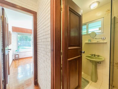 La casa cuenta con 3 dormitorios, de los cuales 2 son en suite y 1 es semi-suite, brindando confort y privacidad. Además, dispone de una práctica dependencia de servicio con baño.